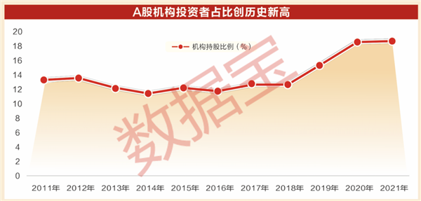 去散户化道阻且长,A股机构化进程稳步推进。剔除一般法人,以持股市值来估算,截至2021年末,A股机构化比例创历史新高,接近19%,较十年前增加5个百分点以上。