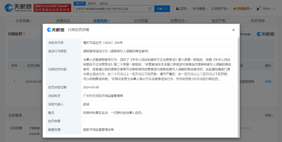 值得一提的是,通过“天眼查”平台查询发现,珍爱网涉及多起法律诉讼,案由包括劳动争议、委托合同纠纷、肖像权纠纷等。此外,天眼查经营风险信息显示,深圳市珍爱网信息技术有限公司、世纪佳缘旗下北京花千树信息科技有限公司广州天河分公司都曾因对其商品作虚假或者引人误解的商业宣传,违反反不正当竞争法,被监管部门处以百万元的罚款。