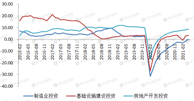 经过上周热火朝天的物价数据,今日统计局发布了生产投资消费情况。由于基数关系,相关数据增幅分别达到9.8%、19.9%和17.7%。但是为了让4月数据更有可比性和延续性,我们对其做了还原分类和去基数处理,实际复苏速度相对平稳。其中投资表现最好,三大支柱板块中,房地产投资的韧性最高,且复苏程度最佳,基本已经恢复到疫情前水平;基建投资增速始终比较克制,没有出现18年之前的大起大落,去基数后始终保持在3%左右的水平。亮点是制造业投资,今年以来出现加速修复的态势,本月转正,但距离疫情前还有3%不到的缺口,考虑到当前出口仍然偏强,制造业投资还将继续带动整体投资的上行。