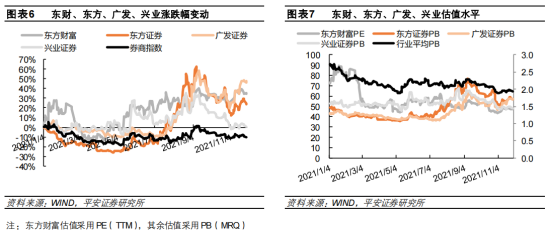 在传统证券公司中,东方证券、广发证券、兴业证券持股头部公募子公司,兼具产品、渠道和客户的比较优势,超额收益明显。截至2021年11月30日,东方证券、广发证券、兴业证券累计涨幅达24.04%、47.86%、0.15%,较券商指数形成超额收益34.05pct、57.87pct、10.17pct。