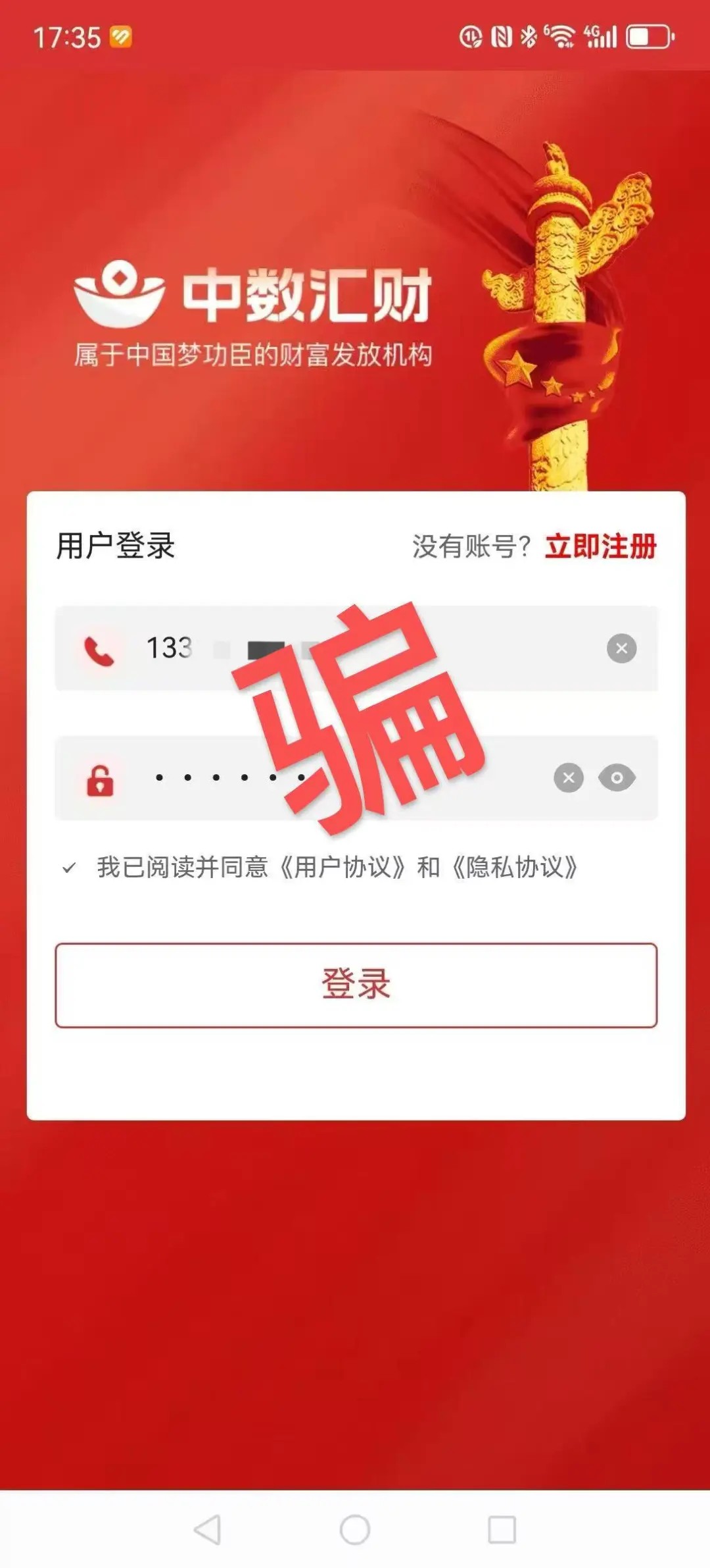 “中数汇财”APP是打着“国家项目”旗号的民族资产解冻类诈骗项目,开始让大家尝到甜头,等进去的人差不多的时候,就会对这些人进行精准诈骗,不要提交身份信息注册,以免上当被骗。