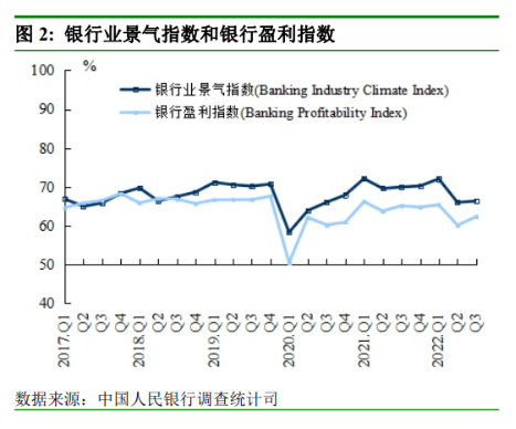 与宏观经济感受相对应,三季度银行业景气指数与盈利指数也比上季度有所上升,分别为66.4%和62.3%,分别比上季度上升0.4和2.2个百分点。