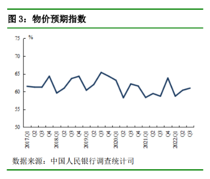 调查显示,对四季度,居民的物价预期指数为61.0%,比上季上升0.6 个百分点。其中,28.1%的居民预期四季度物价将“上升”,52.1%的居民预期“基本不变”,8.6%的居民预期“下降”。