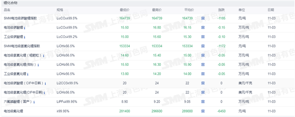 1.锂化合物现货价格