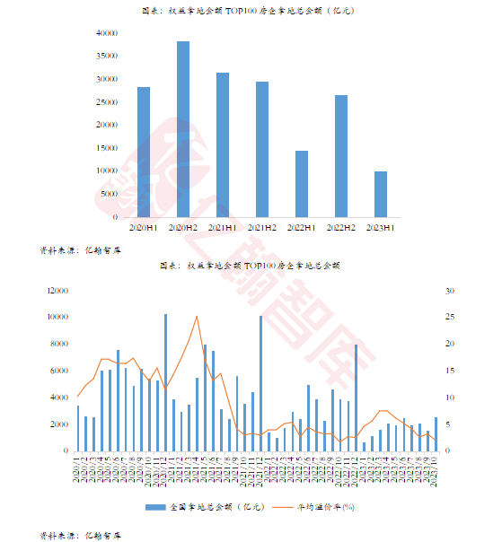 市场行情的回暖并未持续,三四月份需求释放后,市场再度进入“冷清”,头部稳健民企暴雷,更有头部企业遭遇做空,或陷入即将暴雷的负向舆论中,企业信心再遭冲击,民企又从土地市场“退了”,很久没拿地的民企仍旧没拿,上半年拿地积极参与其中的企业拿的更少了,2023年1-10月,权益拿地金额百强房企拿地18146亿元,同比降幅近4成。