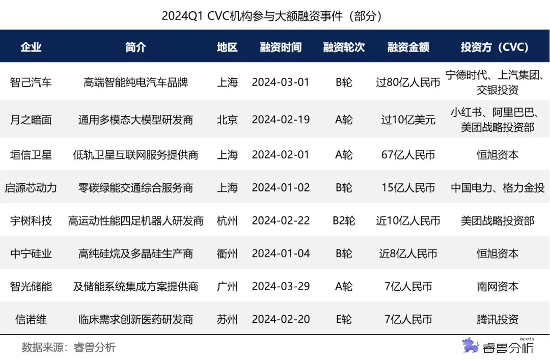 一季度大额融资事件CVC参与度34.6%