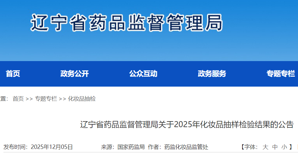 为加强化妆品质量监管,保障公众用妆安全,根据《化妆品监督管理条例》《化妆品抽样检验管理办法》等有关规定,依据2025年辽宁省化妆品抽样检验计划,省药品监督管理局组织对我省化妆品生产经营环节进行了抽样检验。本年度共抽样检验化妆品122批次,发现不符合规定产品3批次。对抽检发现的不符合规定产品,省药品监督管理局已完成核查处置。